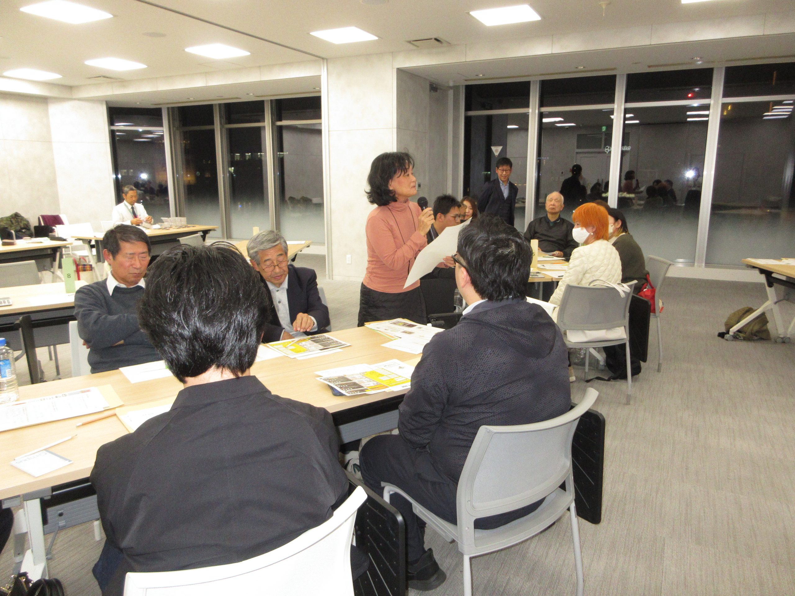 参加者は年代も立場もバラバラですが、それぞれの気づきや自身の身近な空き家、直面している空き家問題についての考えを共有され、話が尽きないテーブルもありました。意見交換後は、各グループ内で話した内容を発表していただき、全体共有も行いました。