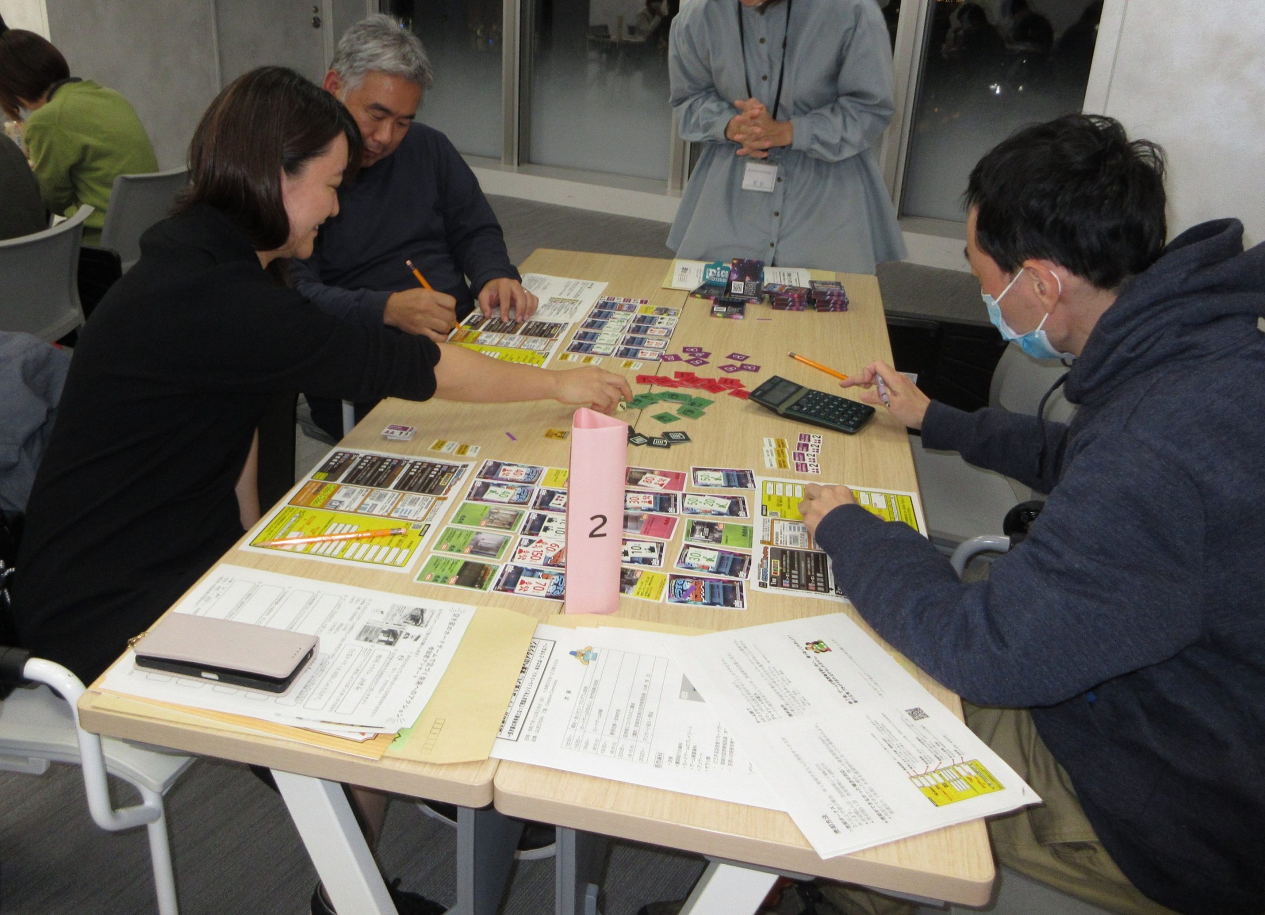 1テーブル3~4名でプレイしていただきました。まずは、1人1つ、好きなカードパックを選びます。カードパックは全部で12種類。選んだカードパックが自分の所有する空き家となります。