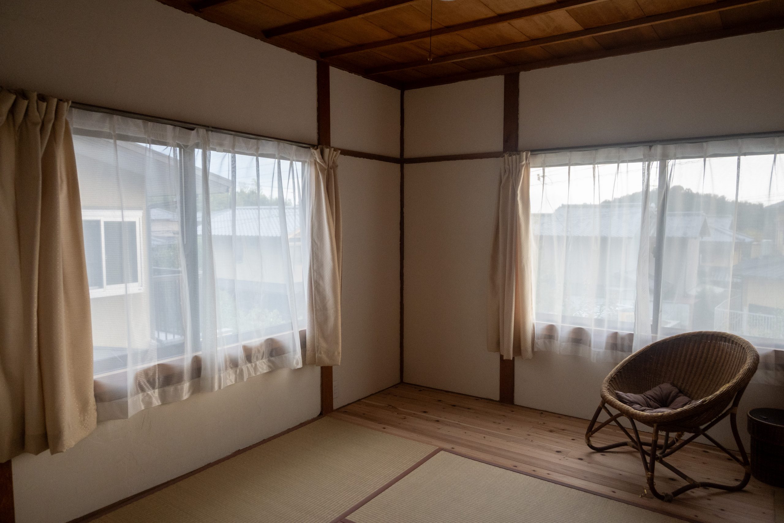 2階は間取りや扉はそのままに、プロの手によって屋根裏の断熱と窓の入れ替えを行い、エアコンを設置。古くなった畳や床板は、Yさんのお兄様がホームセンターで調達した木材を使って張り替えたり、壁の漆喰をDIYで塗り替えたりすることで、リノベーション費用を抑えつつも明るい印象に生まれ変わりました。