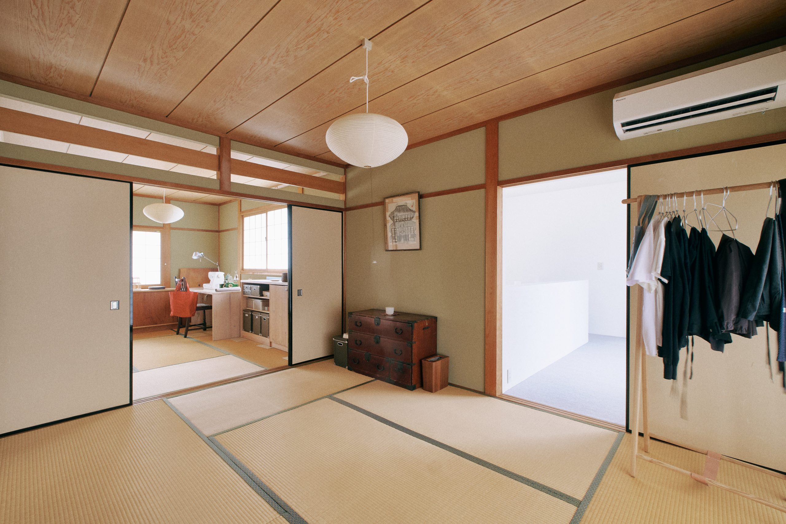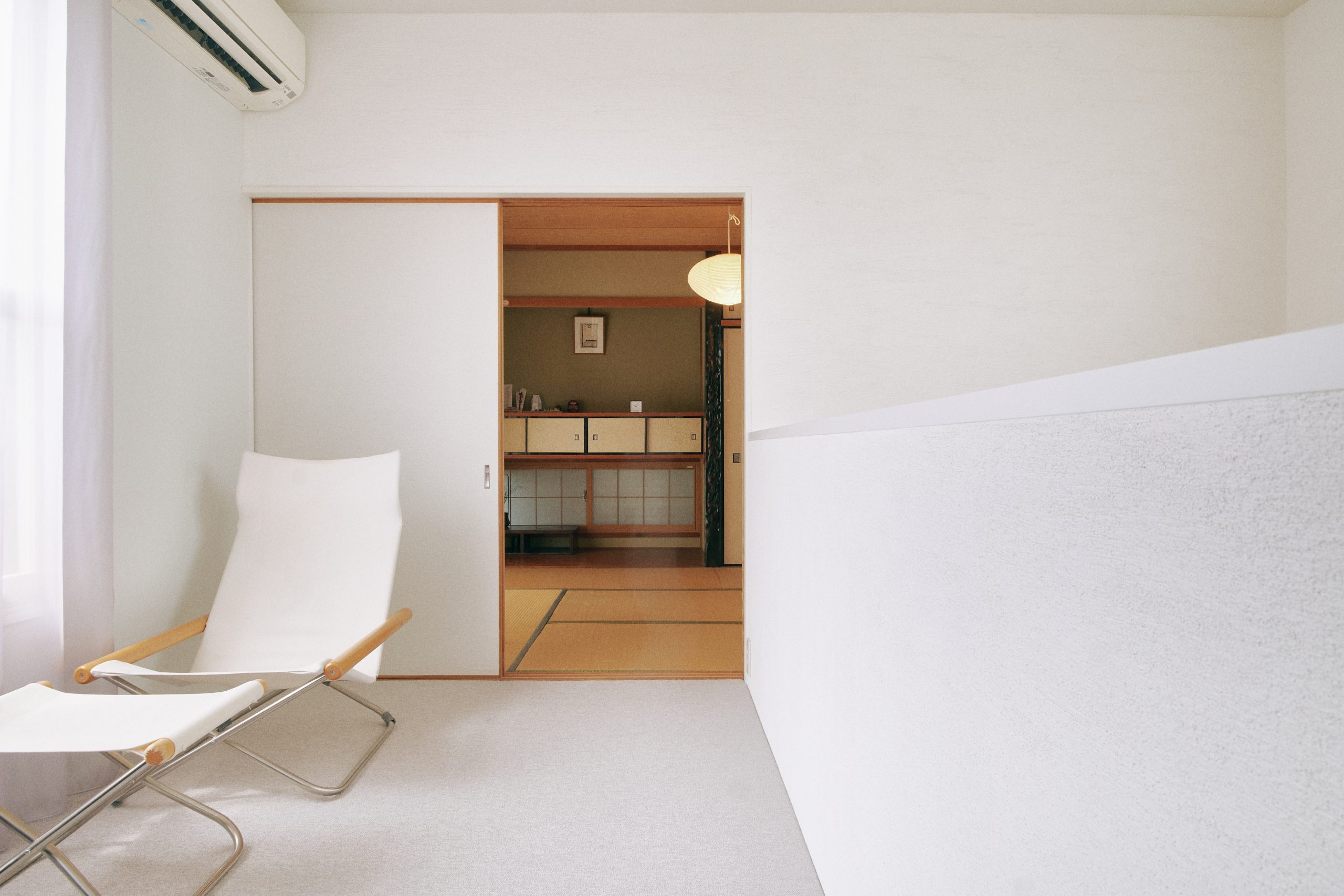 螺旋階段で2階に上がり、階段室を抜けると、1階とは打って変わって和室のお部屋が。この和室も外観同様、リノベーションはしていないとのこと。階段室が設けられている効果で、1階の空気感が損なわれることなく自然と和室が溶け込んでいます。