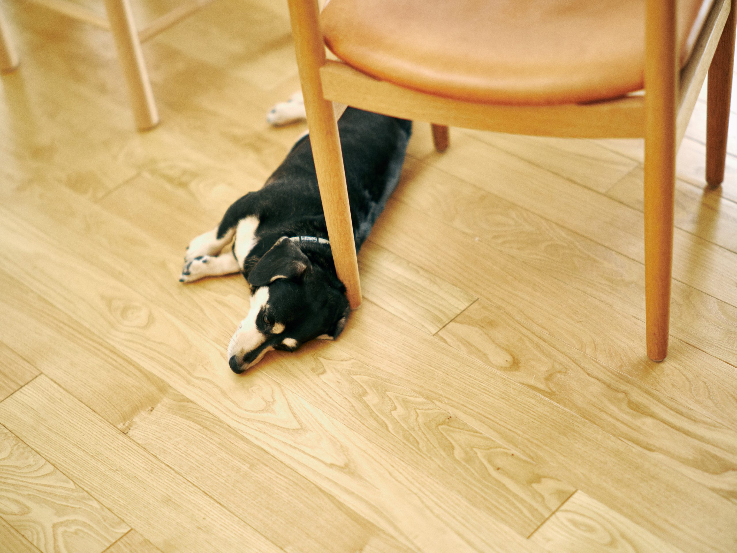 「せっかく床や壁を剥がすのだから、気に入った素材、好きな材料を選んで、家のなかに愛着がある要素を増やそうと思ったんですね。 たとえば、フローリング材は国産の栗材で、途中で継いでいない1800mmのものを使いました。毎日、肌が接するところですし、お客さんに「何がいちばんおすすめですか?」 と訊かれたときにも、ちゃんとお話したいなと。 壁には、漆喰のなかでも蔵や外壁の中塗りによく使われている砂漆喰を選びました。砂漆喰はザラザラとしていて着生がいいので漆喰の下地として塗るものなのですが、光が当たるとちょっとムラが出るというか、柔らかい光や影に変わっていくところが好きだったんです。あと、吸湿放湿の性質もあって、柔らかい空気感になるんですよ」