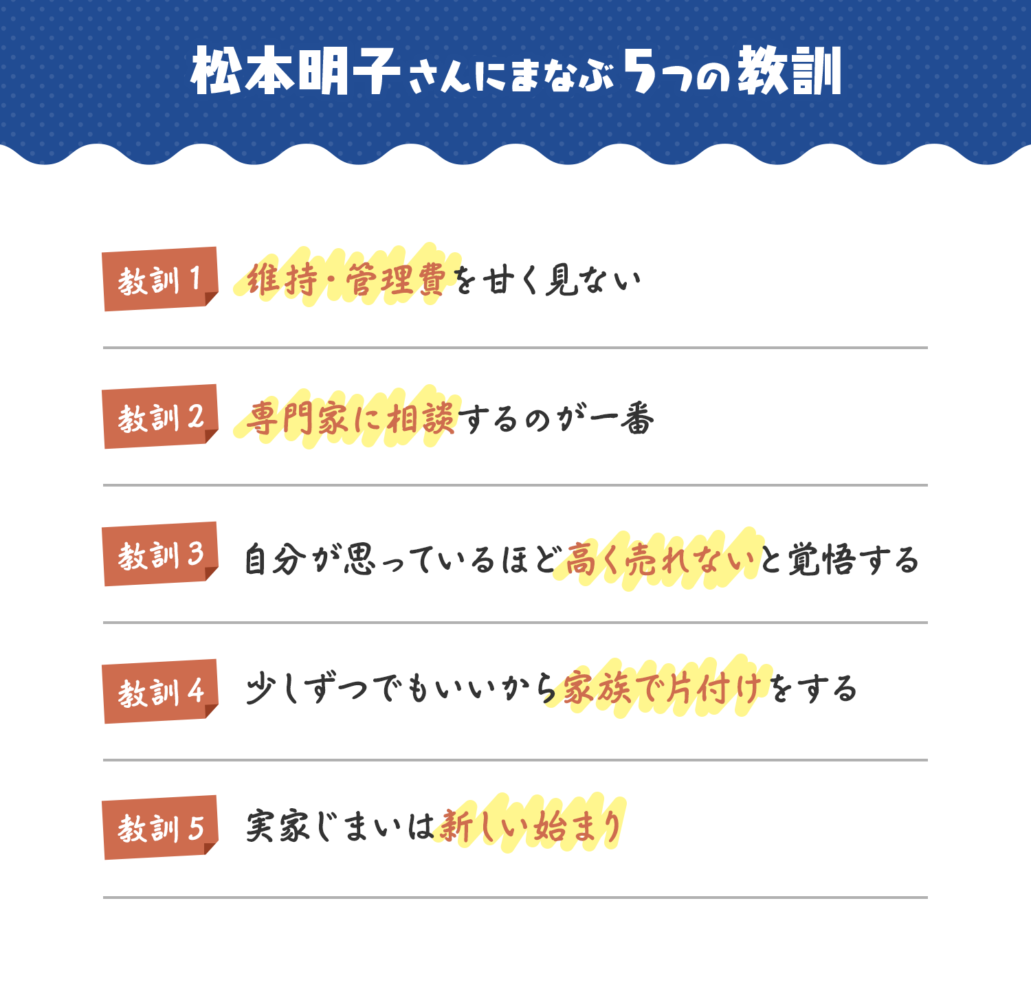 今回は、松本さんに改めてその道のりを振り返っていただき、これから実家の問題に直面するであろう私たちへの貴重な教訓をうかがいました。体験した人だからこそのリアルな言葉は、多くの人々の共感を呼んでいます。