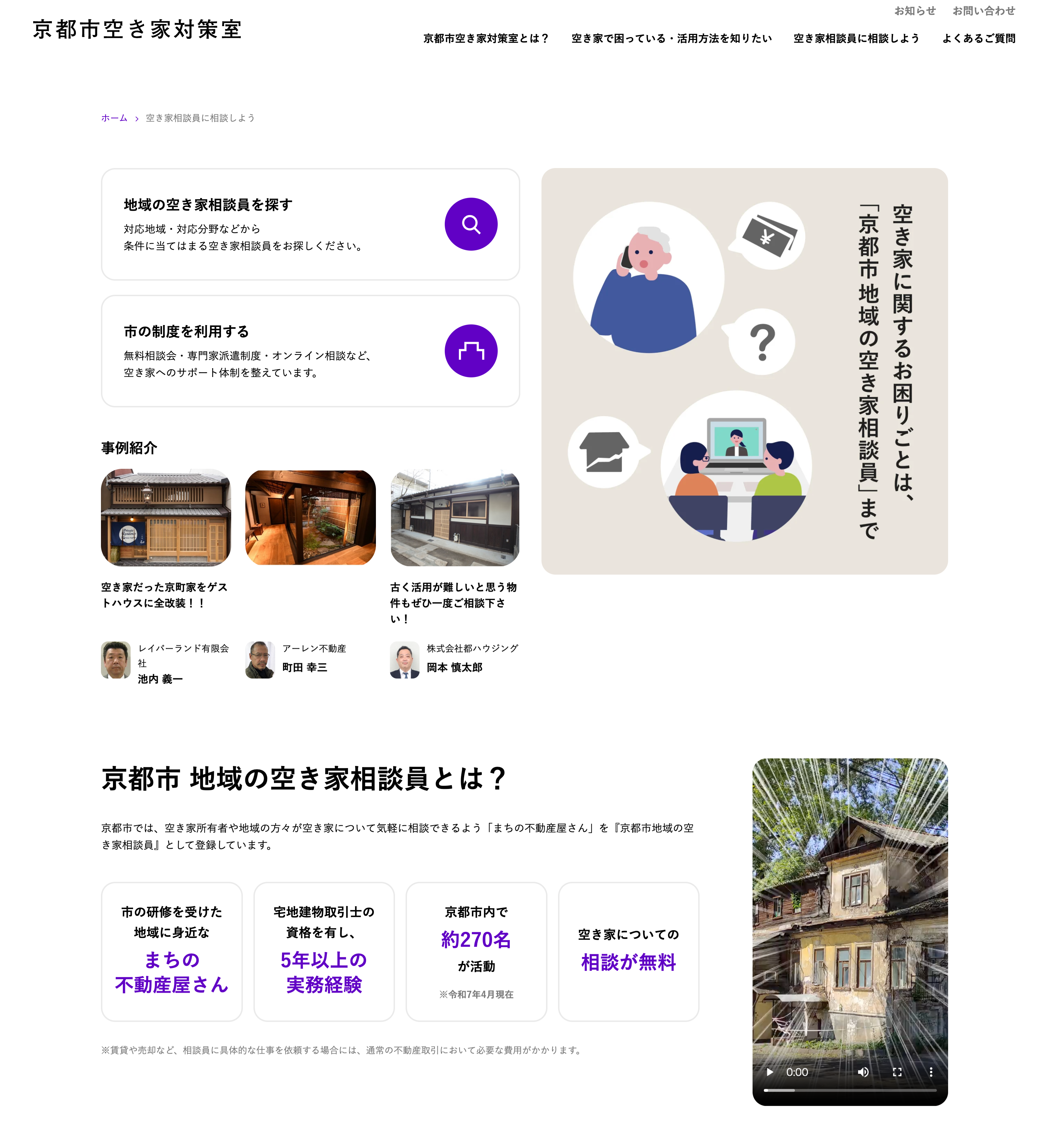 京都市の「空き家相談員」とてもいい支援制度だと思いました。困ったことがあったら些細なことでもいいから相談するのがいいですね。